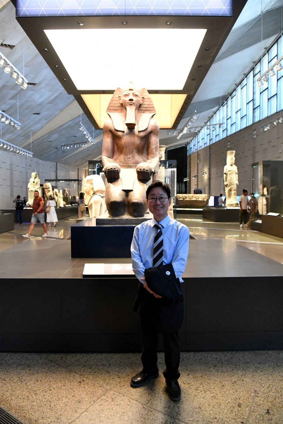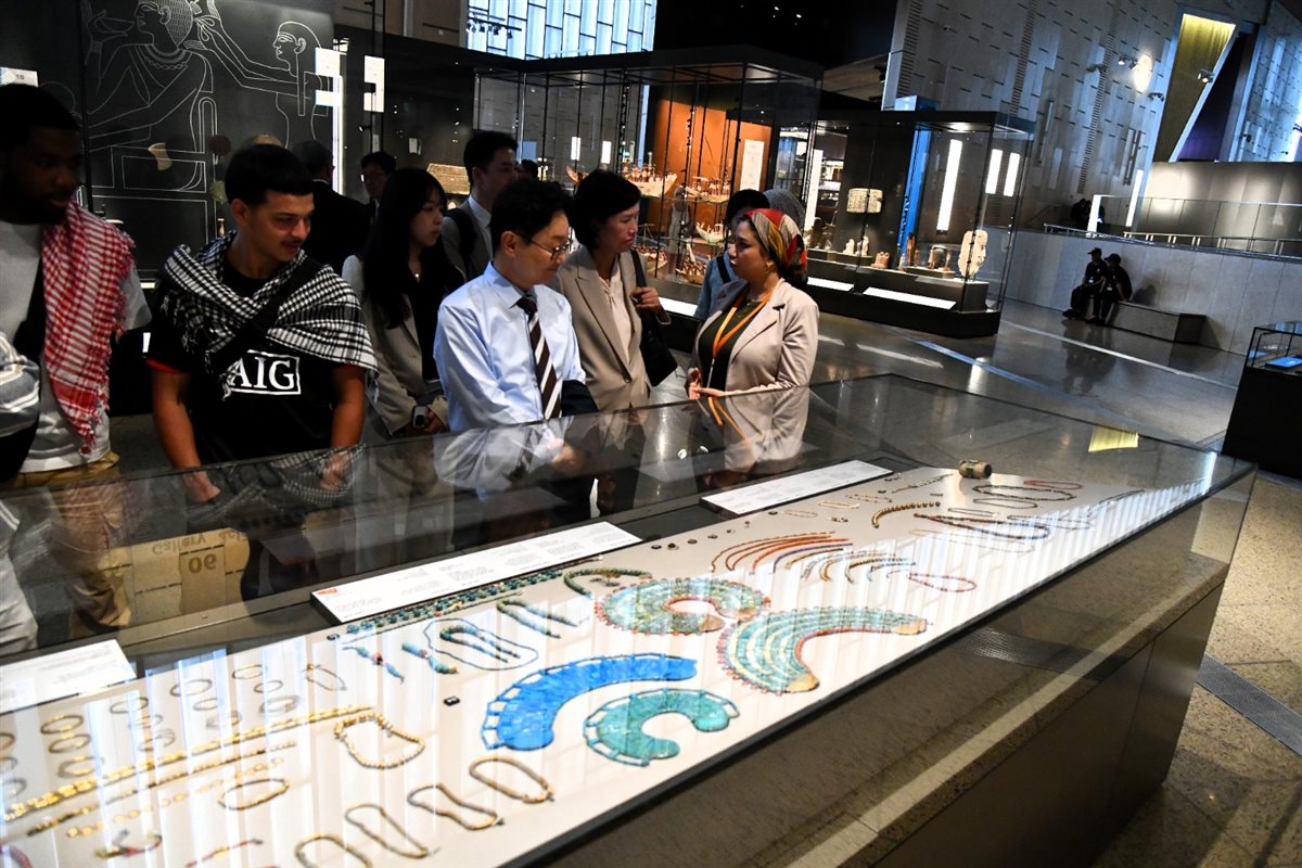 وحرص الدكتور أحمد غنيم، الرئيس التنفيذي لهيئة المتحف المصري الكبير، علي استقبال المبعوث الرئاسي الخاص لجمهورية كوريا الجنوبية، واصطحبهم في جولة شملت الساحة الخارجية، والبهو الرئيسي، والدرج العظيم، وصولًا إلى قاعات العرض الاثنتي عشرة، التي تروي تاريخ الحضارة المصرية القديمة منذ بدايات الأسرات وحتى العصر اليوناني الروماني.