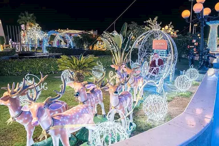 من جانبه، أوضح رامي رزق الله، رئيس قطاع سوهو سكوير، أن أنظمة الإضاءة المستخدمة تعد من أحدث التقنيات العالمية، مع تصميم مجسمات جديدة كل عام لتقديم عروض بصرية مبتكرة للسائحين، وشملت الإضاءات مجسمات لأشجار الكريسماس وبابا نويل وزهرة اللوتس وأشكال للحيوانات والطيور، إضافة إلى عناصر مضيئة متحركة تحاكي الفرق الموسيقية وممرات ضوئية ورحلة السيد المسيح.