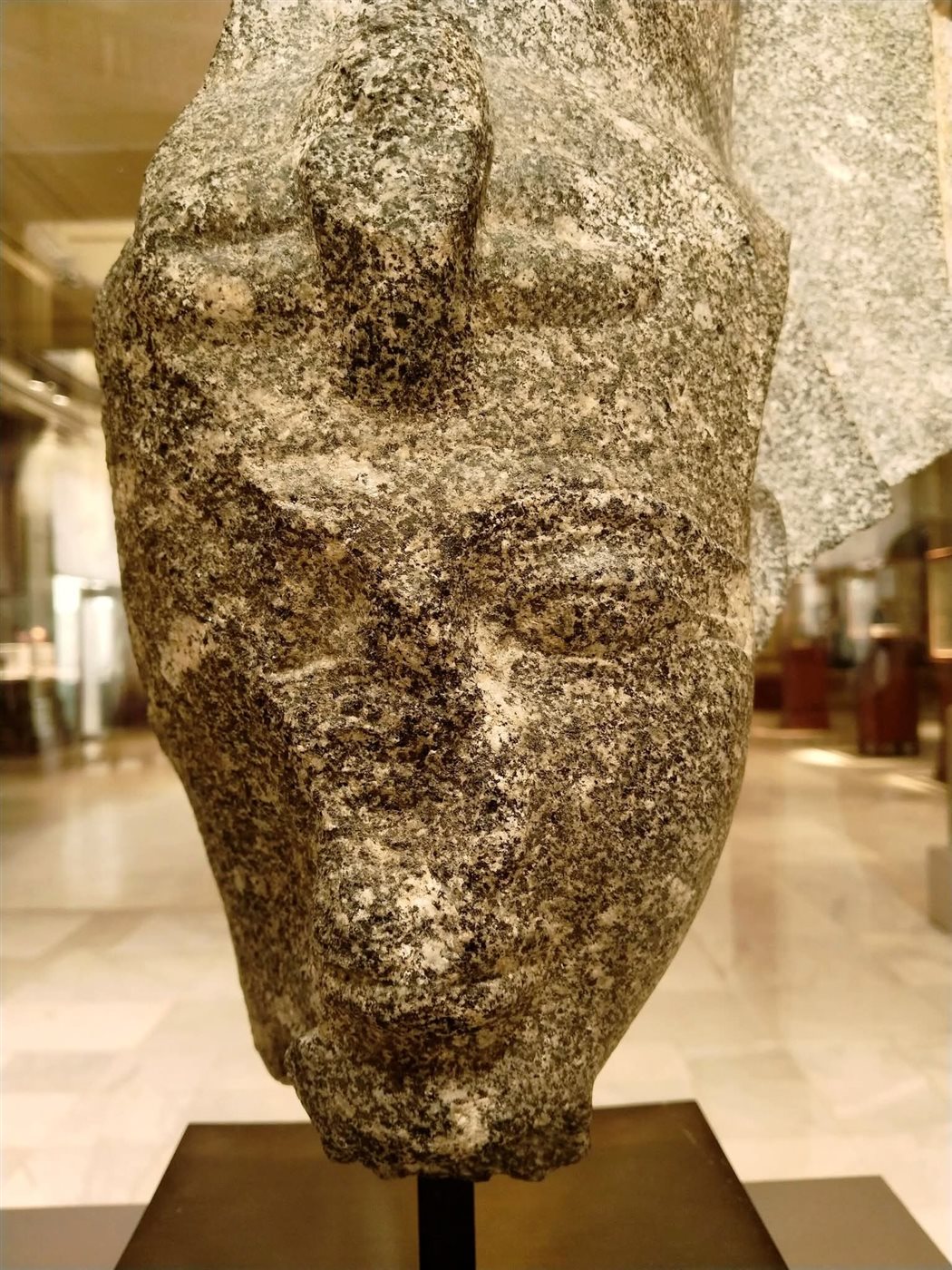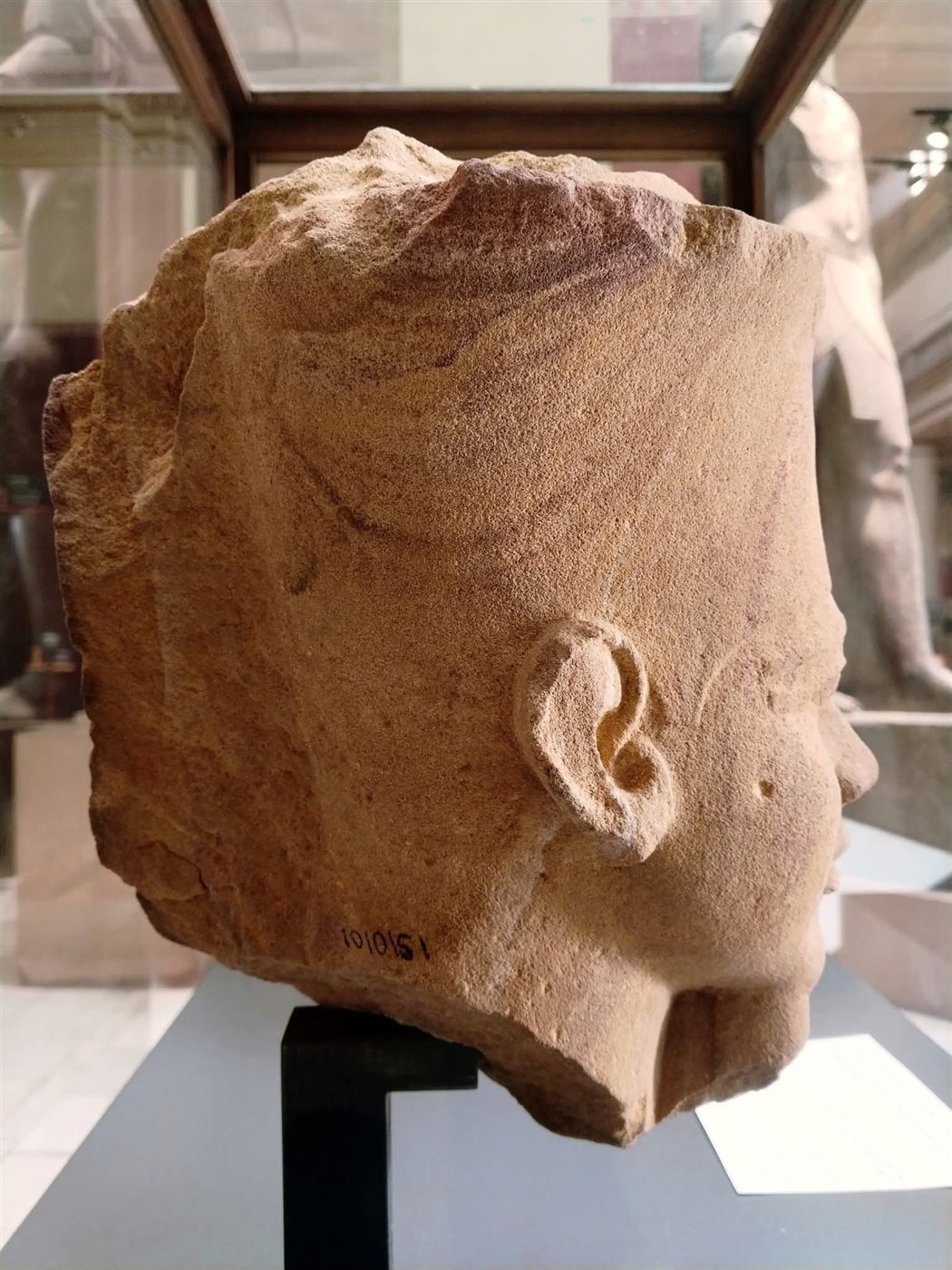 وعرض المتحف المصري بالتحرير رأس لملك من الحجر الرملي الأحمر، يمثل هذا الرأس المكسور ملكا مصريا يرتدي التاج الأحمر لمصر السفلى ويلاحظ فقدان جزء منه .