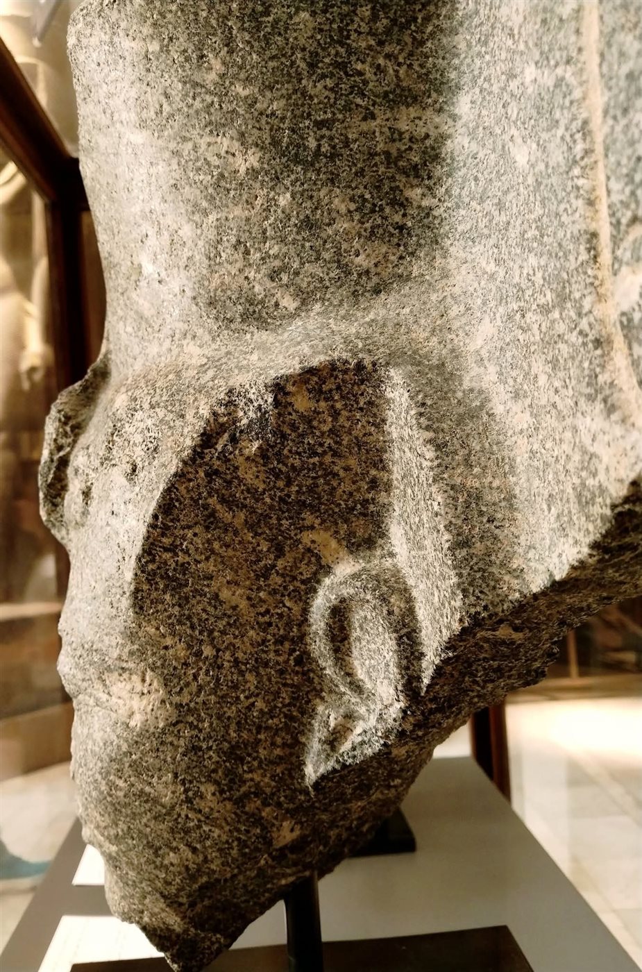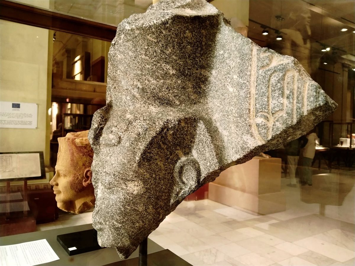 كما يعرض المتحف المصري بالتحرير رأس للملك رمسيس الثاني من الجرانيت، يشكل هذا الرأس المكسور جزءاً من تمثال للملك العظيم رمسيس الثاني.