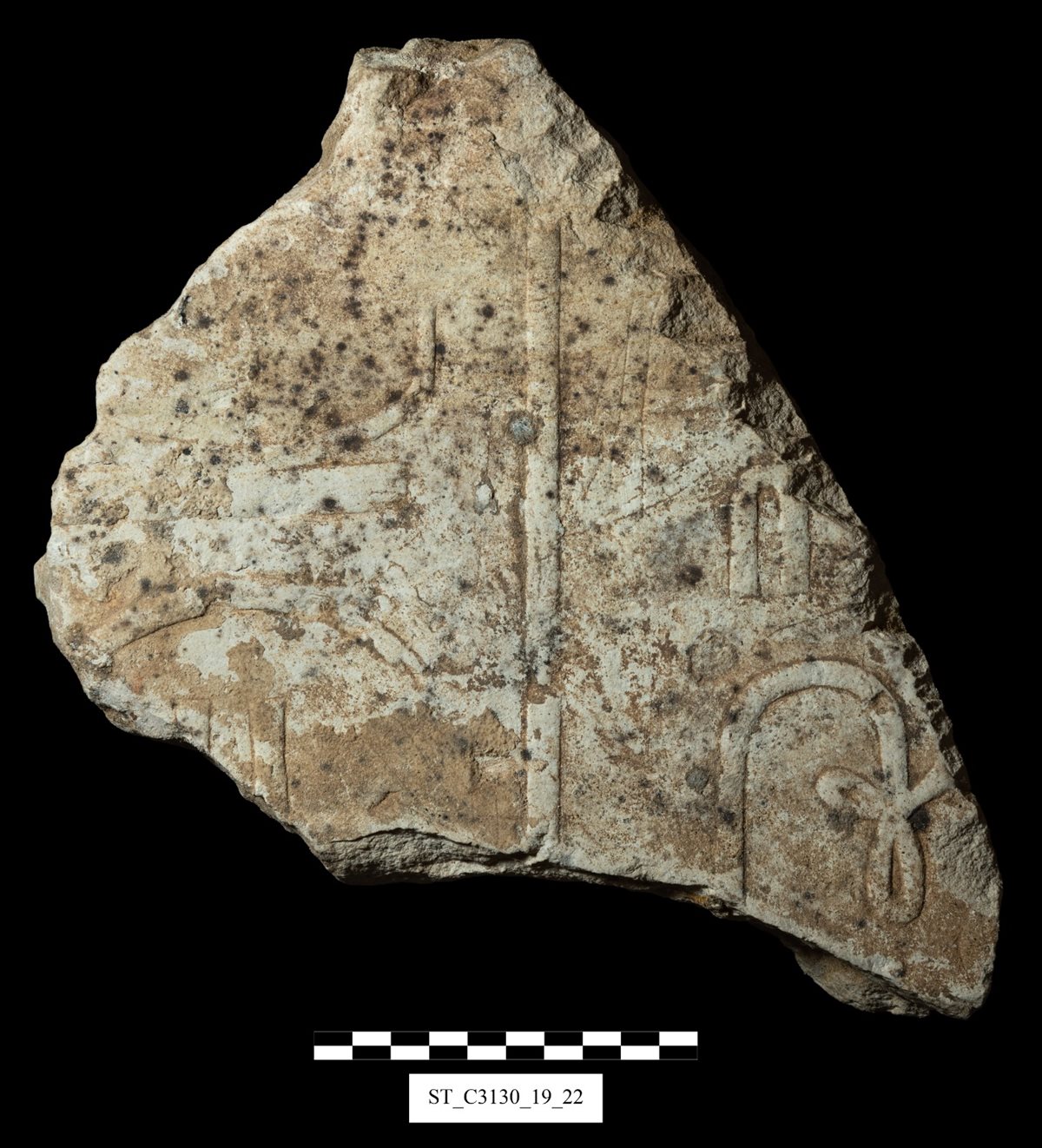 ومن جانبها، أشارت الدكتورة روزانا بيريللي إلى اكتشاف عتبة حجرية ضخمة منقوشة بنصوص هيروغليفية تتضمن تقويمًا للاحتفالات الدينية الخاصة بالمعبد، إضافة إلى ذكر اسم الملك "ني أوسر رع". كما عُثر على شظايا حجرية منقوشة من الحجر الجيري الأبيض الفاخر، إلى جانب كميات كبيرة من الفخار تعود لفترات زمنية تمتد من أواخر الدولة القديمة وحتى بدايات الدولة الوسطى، ويعود معظمها إلى عصر الانتقال الأول.