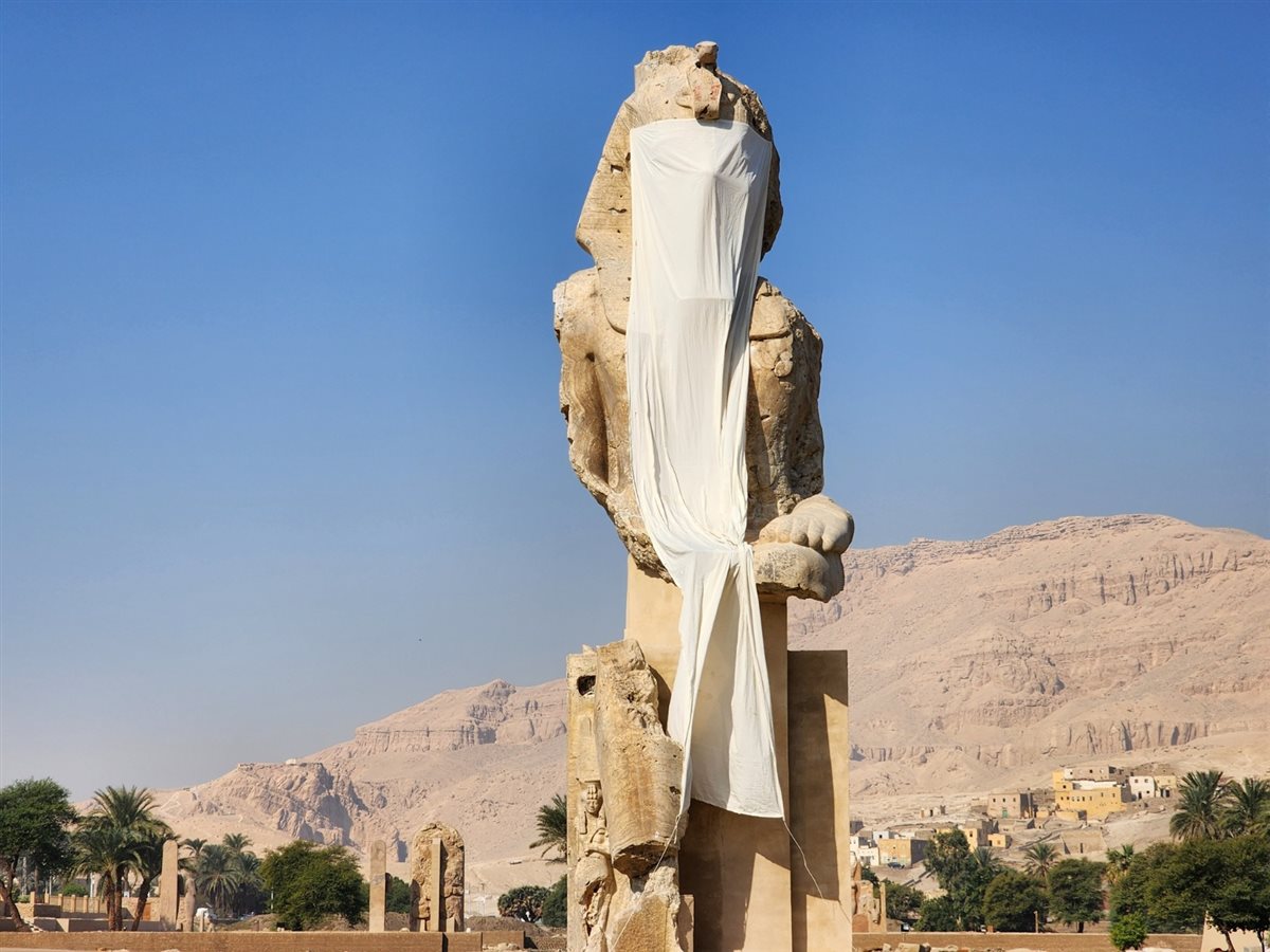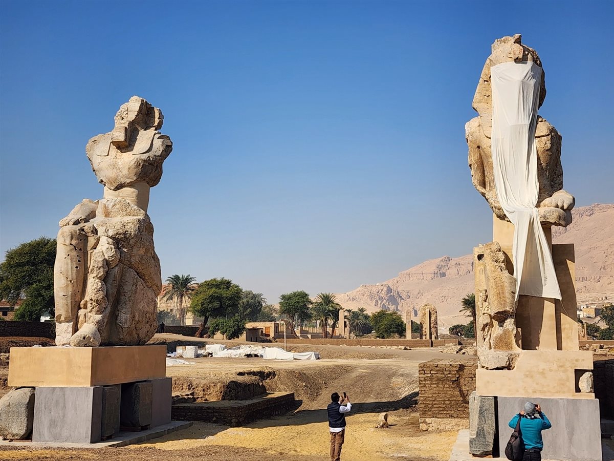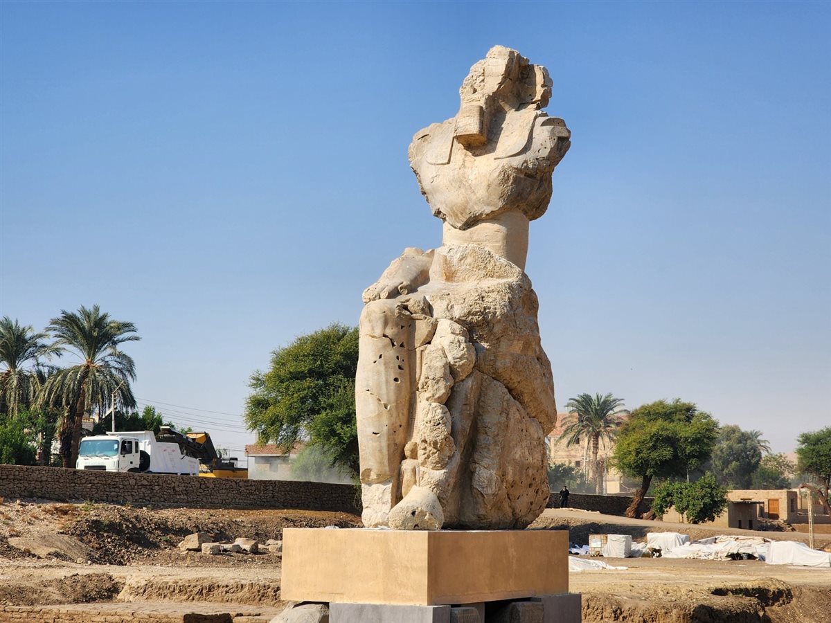 أول صور لتمثال الملك أمنحتب الثالث بعد إعادة بناؤه بمعبد ملايين السنين بالأقصر