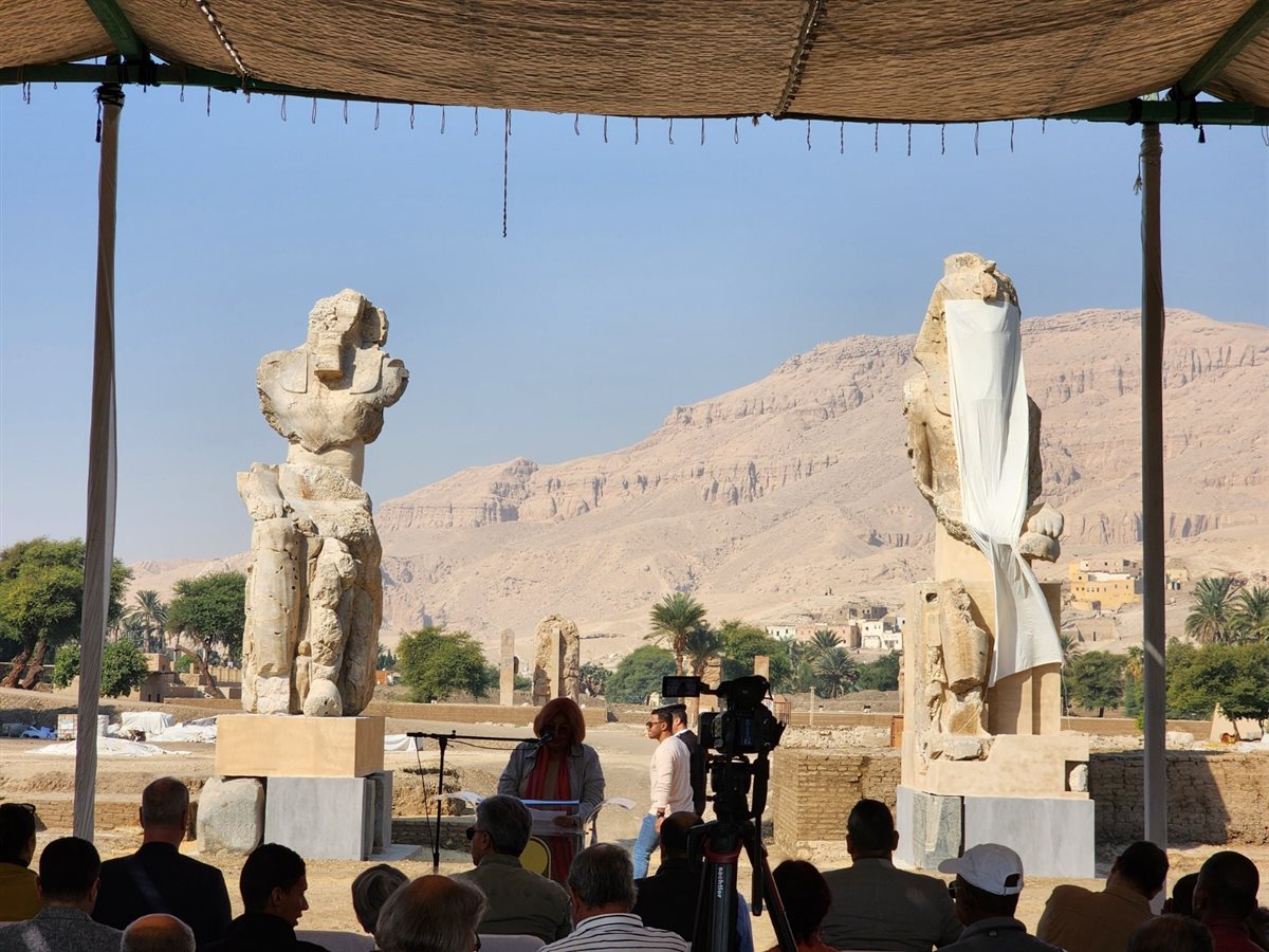 وعملت البعثة التي بدأت أعمالها بالموقع منذ عام 1999 – على استكمال التجميع النهائي للتمثال العملاق الذي يمثل الملك أمنحتب الثالث جالسًا على كرسي العرش، وفق الجلسة الملكية المعتادة، وويعد هذا التمثال من أعظم القطع التي جرى ترميمها، حيث يصل ارتفاعه إلى نحو 10 أمتار ويزن أكثر من 60 طنًا، ومازال يحتفظ ببقايا ألوان زاهية على ملامح الوجه.