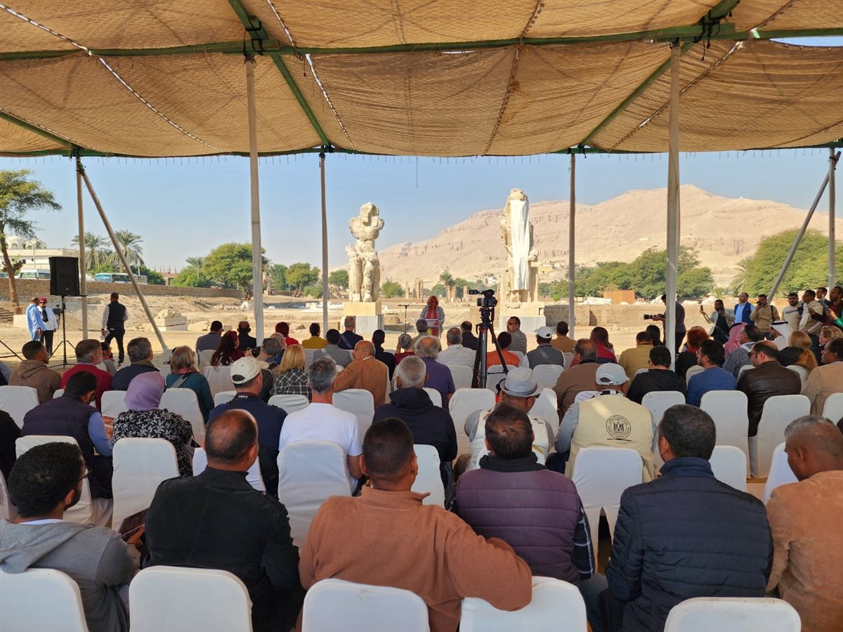 وتشهد مراسم الكشف عن التمثال حضور عدد من السفراء والقناصل الأجانب، إلى جانب الأمين العام للمجلس الأعلى للآثار، ورؤساء وعلماء البعثات العاملة بالأقصر، ومحافظ الأقصر، وعدد من القيادات الأمنية والتنفيذية والأثرية بالمحافظة.