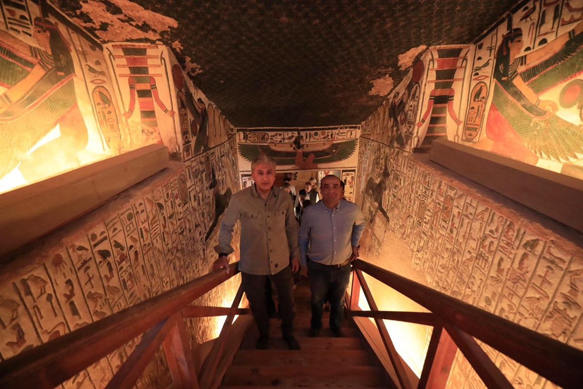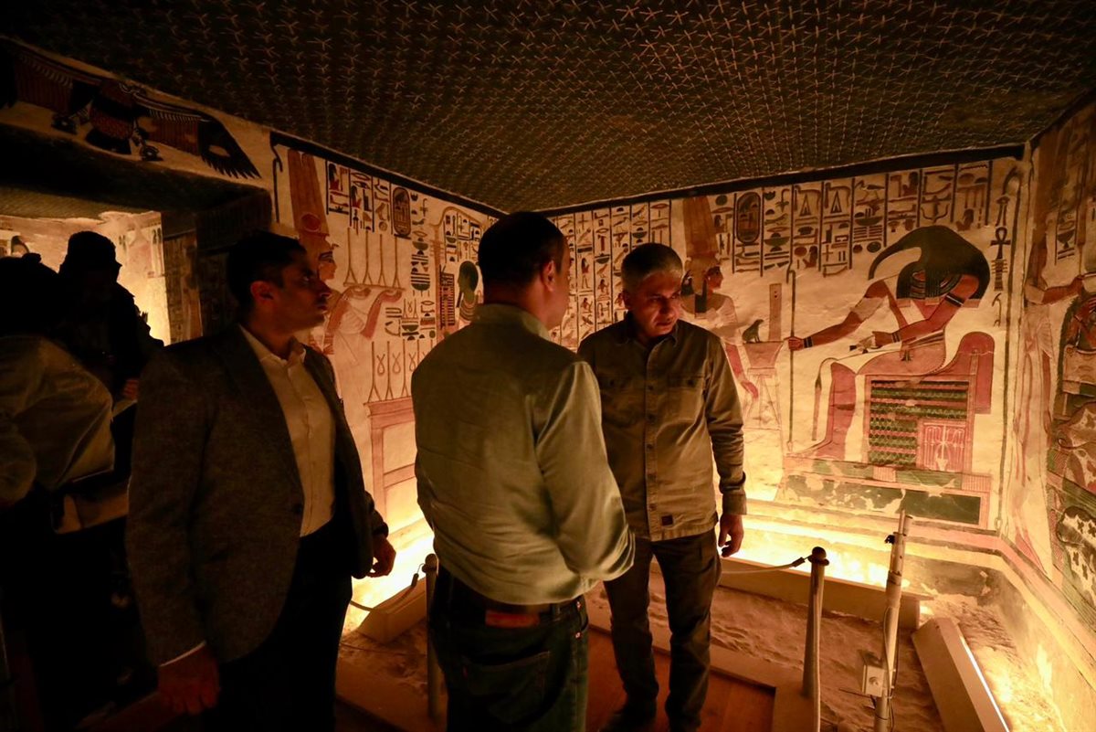 هذا بالإضافة إلى زيارة مقبرة الملكة نفرتاري للوقوف على آخر مستجدات الأعمال وما آلت إليه نسب الرطوبة بها، خاصة في ضوء عمل اللجنة المتخصصة التي تم تكليفها مؤخرا من قبل الأمين العام للمجلس الأعلى للآثار لقياس نسبة الرطوبة بالمقبرة، في ضوء دراسة إمكانية إعادة فتحها وفقا لقواعد محددة لعدم تأثرها بزيادة أعداد الزائرين.