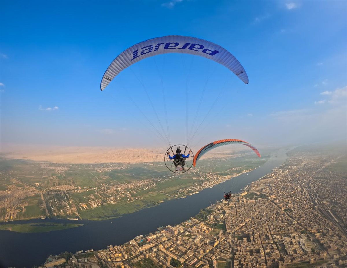 سماء الأقصر تتزين بـ100 طيار عالمي في استعراض باراموتور يخطف الأنظار