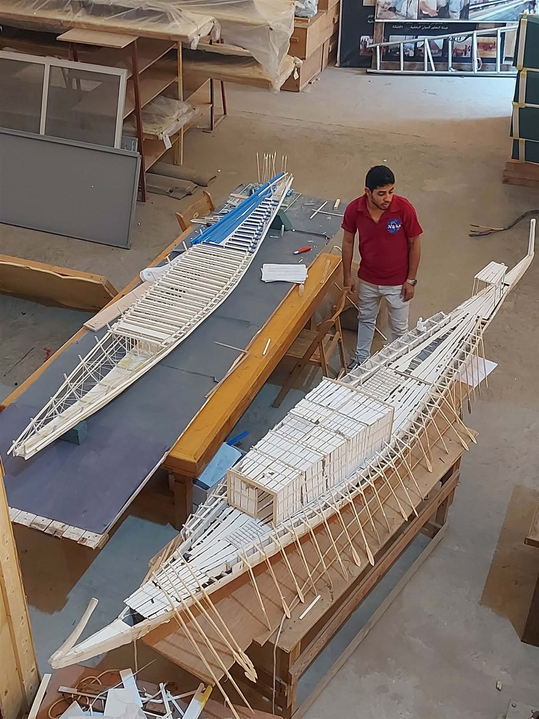 وكشف الدكتور خالد حسن، أن الهيكل المعدني الخاص بالمركب تم تصنيعه بواسطة شركة مصرية وفق حسابات هندسية دقيقة، بحيث يكون لكل قطعة خشبية موضع محدد لا يمكن استبداله، مما يضمن سلامة المركب واستقرارها على المدى الطويل.
