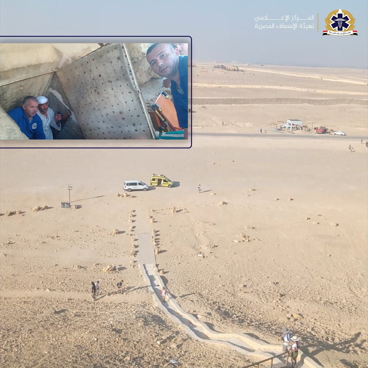 بدأت القصة باستغاثة إسعافية عاجلة تلقتها غرفة العمليات عبر الخط الساخن 123، تفيد بوجود حالة مصابة في محيط هرم سنفرو المنحني بمنطقة دهشور، وعلى الفور، تم إرسال مركبة إسعاف بكود 2399 إلى موقع البلاغ.