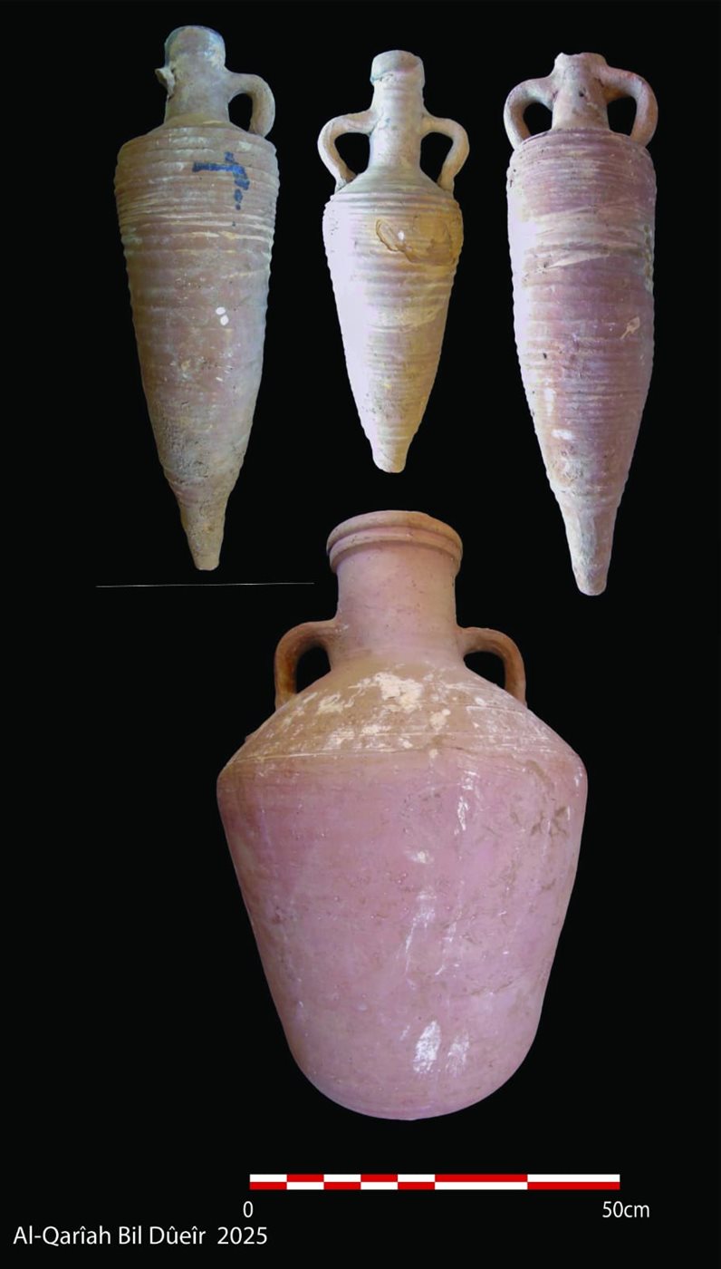 وأوضح وليد السيد رئيس البعثة الأثرية، أن البعثة عثرت بالموقع على عدد من اللقى الأثرية، من بينها أمفورات كانت تُستخدم في التخزين، تحمل بعضها كتابات يُحتمل أن تكون حروفًا أو أرقامًا أو أسماء مدونة على أكتافها، إلى جانب مجموعة من الأوستراكات تحمل كتابات باللغة القبطية، وعدد من أدوات المعيشة، وكسَر حجرية تمثل أجزاء من عناصر معمارية، بالإضافة إلى أجزاء من لوحات من الحجر الجيري منقوش عليها كتابات بالخط القبطي.