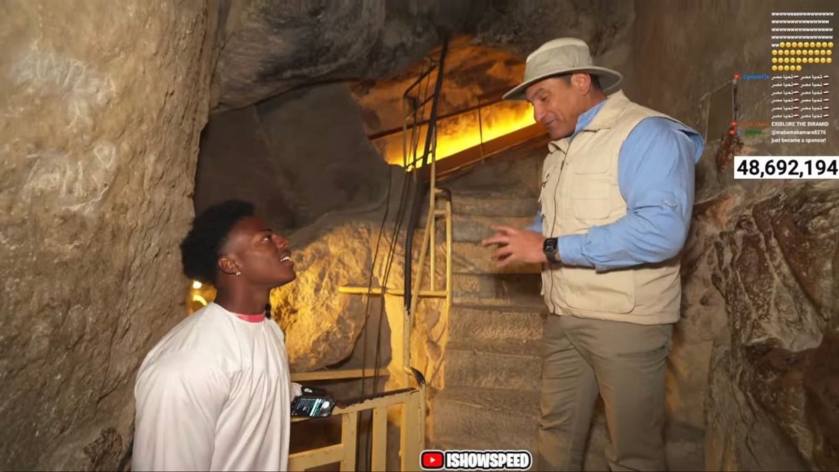 واستهل اليوتيوبر العالمي سبيد زيارته بمنطقة أهرامات الجيزة، حيث كان في استقباله أشرف محيي مدير عام آثار الجيزة، حيث قاما بجولة داخل الهرم الأكبر، تم خلالها تقديم شرح وافٍ حول أسرار الهرم، وطرق بنائه، وعبقرية الفكر الهندسي والتخطيطي للمصريين القدماء.