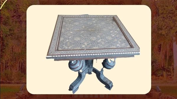 روائع قصر المنيل.. منضدة فنية مطعّمة بالصدف والسن تزين سراي الإقامة