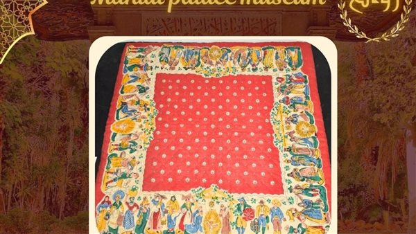 لحاف قطني من قماش الكريتون الأحمر يزين مقتنيات قصر المنيل ويبرز الفن الديني التقليدي