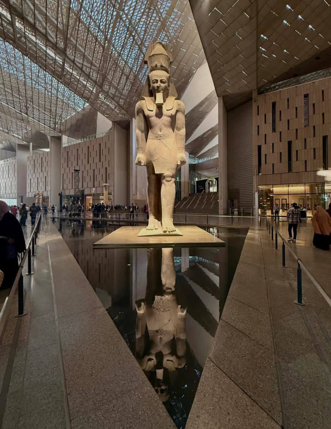 شرعت ادارة المتحف المصري الكبير، في تركيب حاجز لمنع الزائرين من السقوط في المياة الموجودة حول تمثال الملك رمسيس الثاني الموجودة في البهو الخارجي للمتحف المصري الكبير.