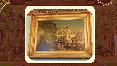 يقدّم متحف قصر المنيل لوحة زيتية متميزة تجسّد مشهداً نابضاً بالحياة لسوق شرقي تقليدي، تتصدره في الخلفية مآذن جامع الأحمدية بمدينة إسطنبول، وسط مجموعة من المباني الشرقية التي تعكس روح العمارة الإسلامية وجمالياتها الخالدة.