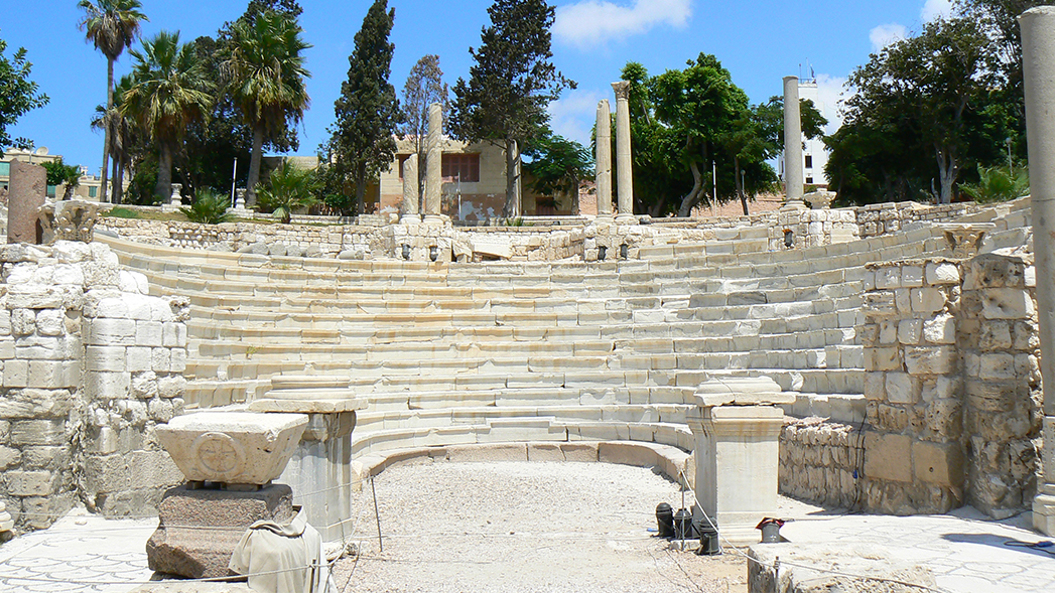 يقع المسرح الروماني في كوم الدكة بمحافظة الإسكندرية، تم بناؤه أوائل القرن الرابع الميلادي، وظل مستخدماً حتى العصر الإسلامي، مُثل على هيئة حدوة الحصان U واستخدم كصالة للاستماع في العصر الروماني.