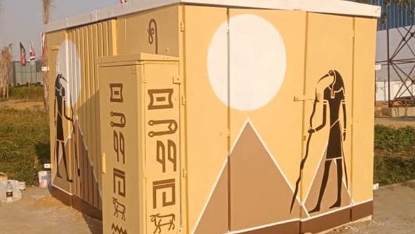 تجميل الأكشاك الكهربائية برسومات فرعونية بالطرق المؤدية للمتحف المصري الكبير