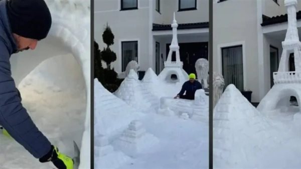حوّل الفنان السويدي من أصول سورية كميل يعقوب حديقة منزله في مدينة سودرتاليا إلى معرض مفتوح للمنحوتات الثلجية، مجسداً معالم تاريخية بارزة من حضارات مختلفة، بينها أبو الهول والأهرامات المصرية وبرج إيفل، في عمل فني يهدف إلى الجمع بين رموز الشرق والغرب.