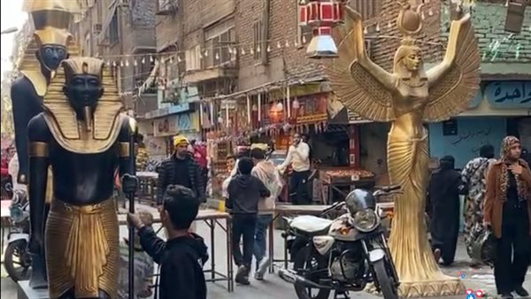 تماثيل فرعونية تزين مداخل إفطار المطرية للترويج للسياحة الثقافية