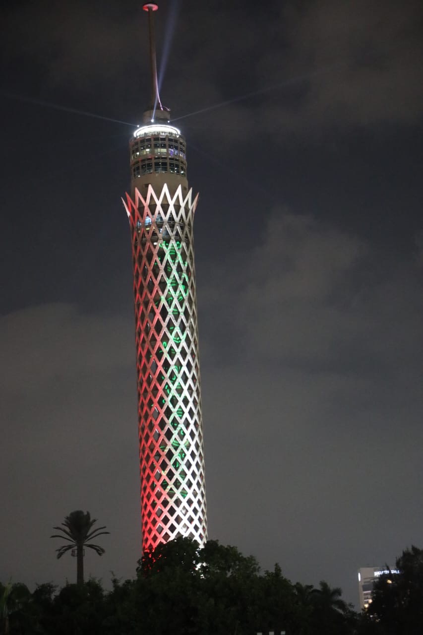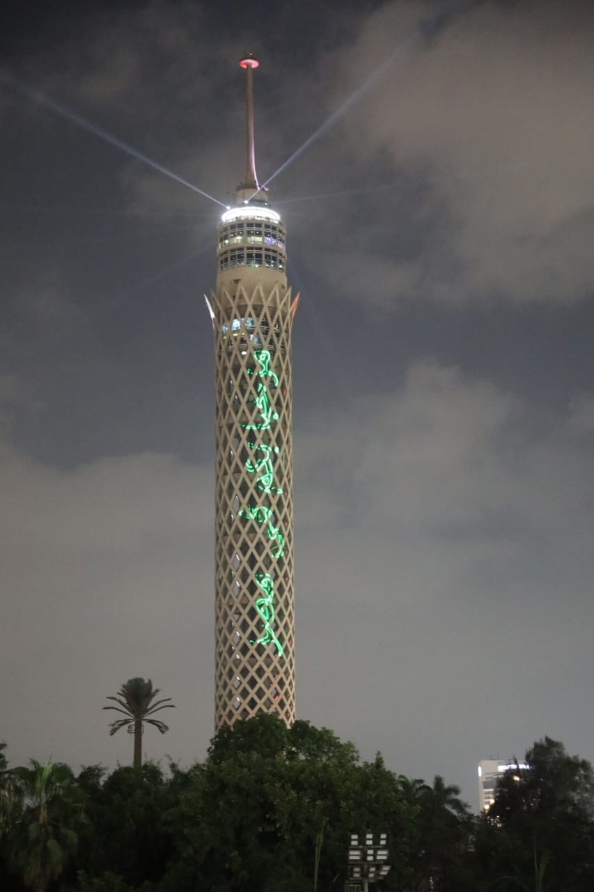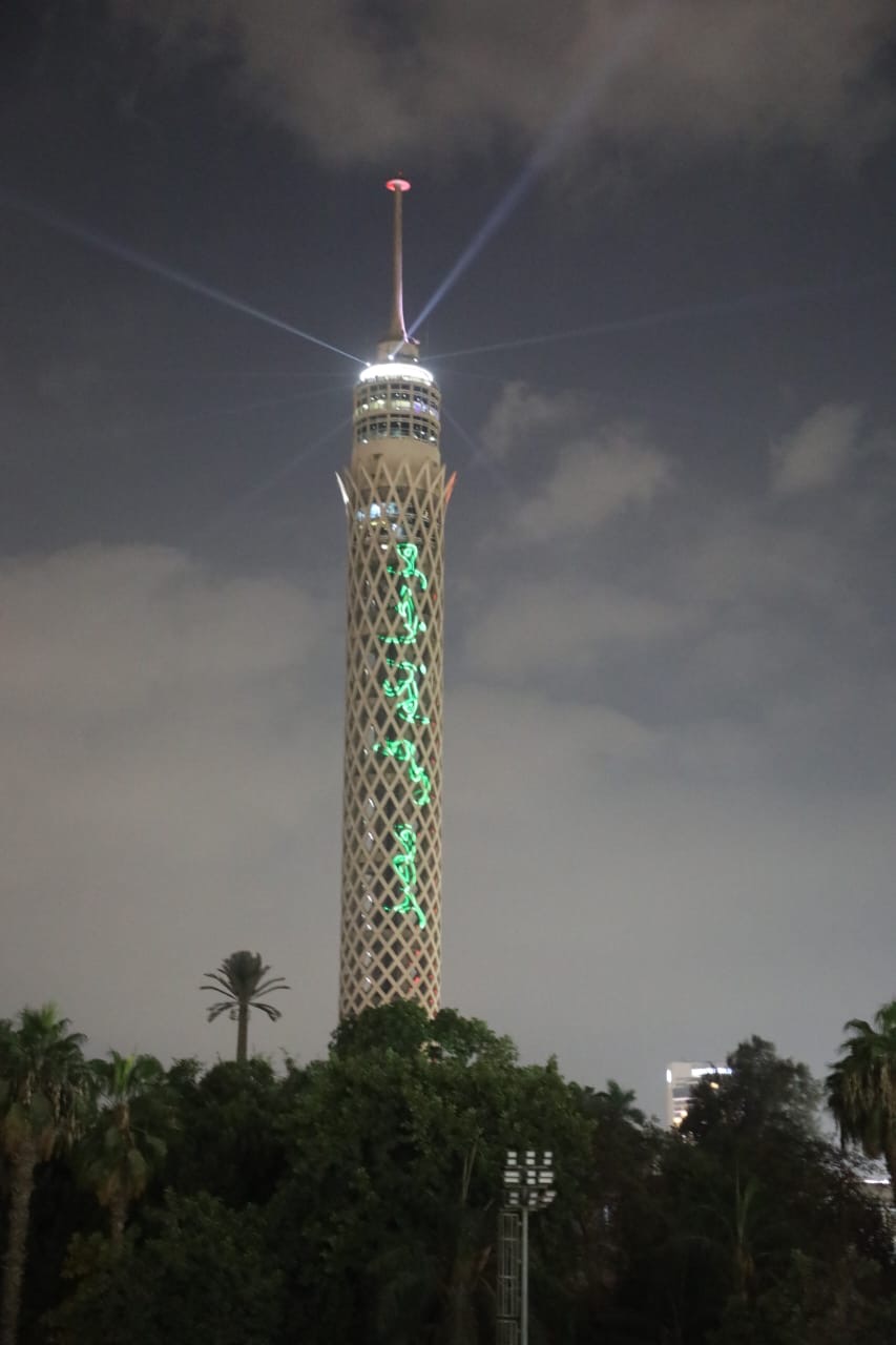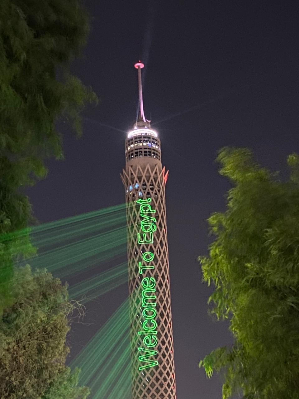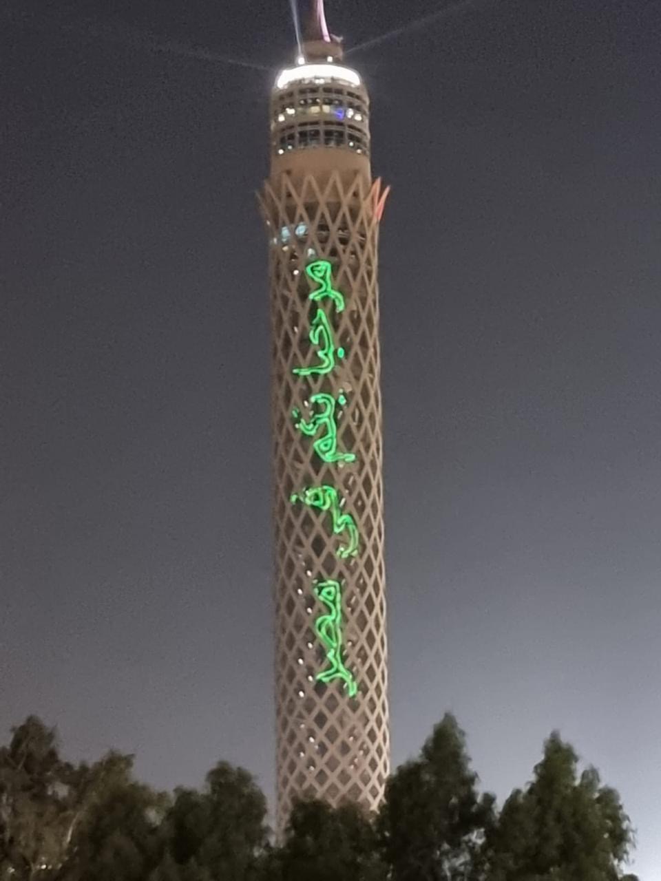 برج القاهرة يتزين بعبارات ترحيب واحتفاء بافتتاح المتحف الكبير