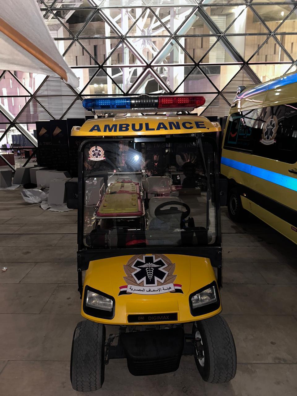 وأوضح عبدالغفار أن خطة التأمين الطبي تتضمن مجموعة من الإجراءات لتوفير الرعاية الصحية الفورية، بما في ذلك: تجهيز المتحف بعيادة طبية مجهزة بأحدث الأجهزة ، بالإضافة إلى وطواقم طبية متخصصة للتعامل مع الحالات الطارئة أو الروتينية، ونشر 8 سيارات إسعاف حديثة ومزودة بمعدات الإنعاش والإسعاف الأولي داخل المتحف، بالإضافة إلى 15 سيارة متمركزة في نقاط استراتيجية حول المتحف، لضمان الوصول السريع إلى أي موقع داخل أو خارج المبنى
