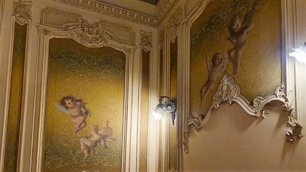 وتتميز هذه الجدران باستخدام خامات فاخرة، من أبرزها الرخام الطبيعي والخشب المنحوت المعروف بـ"البانوهات"، إلى جانب الزخارف الكلاسيكية المستوحاة من طرازي الباروك والروكوكو، حيث تتداخل الزخارف النباتية مع التفاصيل المذهبة في تناغم بصري يعكس عظمة التصميم الأوروبي الممزوج بلمسات مصرية ملكية.