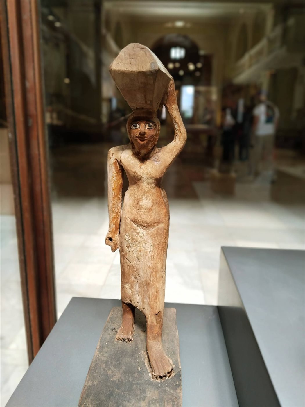 وفي مشهد يمزج بين الجمال اليومي والطقوس الجنائزية، نرى تماثيل "التناجرا" الطينية التي وفدت من اليونان واستوطنت الإسكندرية والفيوم في العصرين البطلمي والروماني؛ لتصور المرأة بملابسها المنسدلة الأنيقة كرمز للخصوبة والجمال والزينة المنزلية، مما يعكس تداخل الثقافات في تصوير الأنوثة. وفي عمق الحياة اليومية والروحية للدولة الوسطى، تطل علينا المرأة في هيئة خادمة "تحمل سلة القرابين" بتمثال من الخشب الملون عُثر عليه في دهشور، ليوثق دورها الحيوي في استمرارية الطقوس وضمان الرخاء.