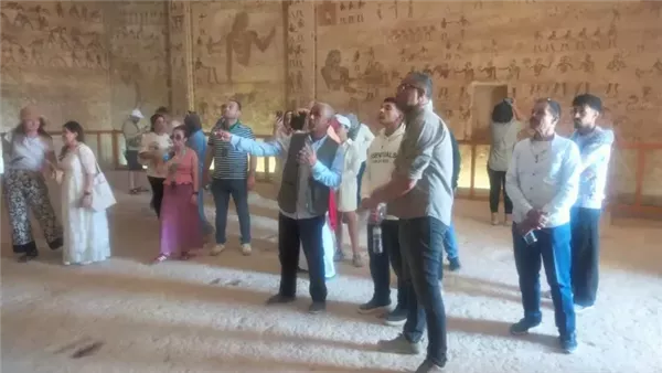 وشهدت الزيارة جولة داخل المقابر الأثرية بمنطقة بني حسن، حيث تعرّف المشاركون على مشاهد الحياة اليومية والأنشطة المختلفة المنحوتة على جدران المقابر، من بينها مناظر الألعاب الرياضية التي تميز آثار بني حسن، وتعكس جانبًا من تطور الحضارة المصرية القديمة، إلى جانب الاستماع لشرح تاريخي يوثق عراقة الموقع وأهميته عبر العصور.