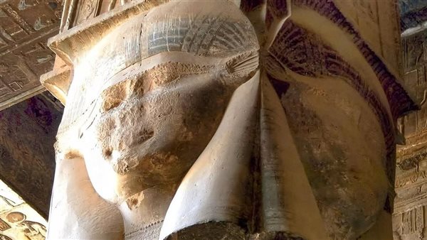 ويتميز المعبد بتفاصيله المعمارية الفريدة، وعلى رأسها التيجان المزيّنة برأس الإلهة حتحور، والتي تجمع بين الملامح البشرية وأذني البقرة، مع تاج مستوحى من آلة “السيستروم” الموسيقية المقدسة، ما يعكس الرمزية الدينية العميقة لعبادة حتحور.