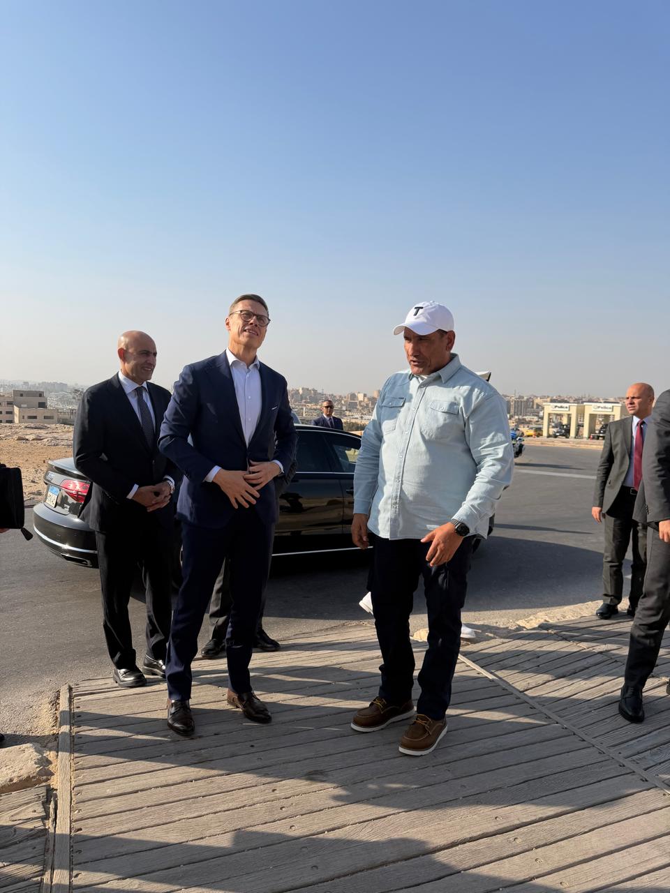 وعقب انتهاء الزيارة بالمتحف، توجه رئيس جمهورية فنلندا والوفد المرافق له إلى منطقة أهرامات الجيزة، حيث كان في استقبالهم الأستاذ أشرف محيي الدين، مدير عام آثار القاهرة والجيزة، والذي اصطحبهم في جولة تفقدية داخل المنطقة الأثرية، استعرض خلالها تاريخها وأبرز الاكتشافات الأثرية بها، إلى جانب أعمال الحفائر الجارية حاليًا.