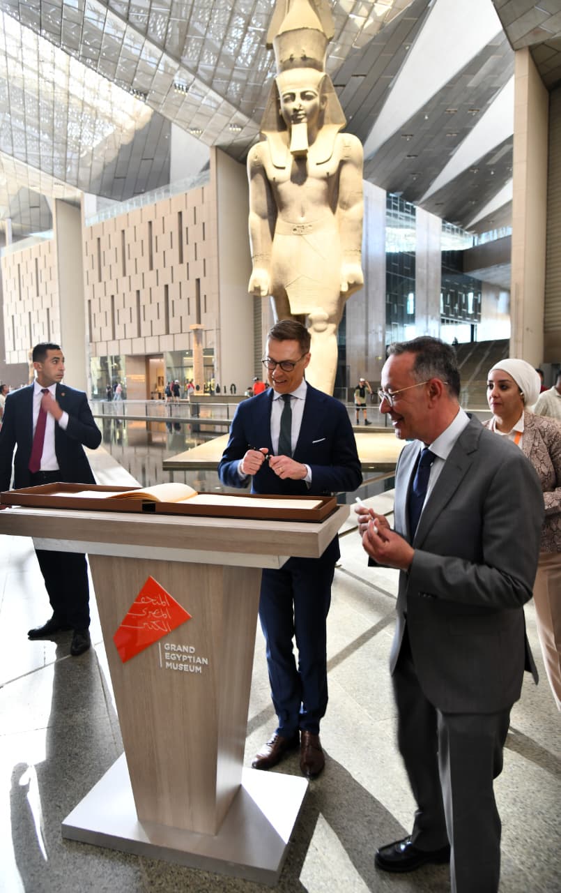 زار الدكتور ألكسندر ستوب رئيس جمهورية فنلندا، والوفد المرافق له، زيارة المتحف المصري الكبير ومنطقة أهرامات الجيزة، بمرافقة محمد عبد اللطيف وزير التربية والتعليم.