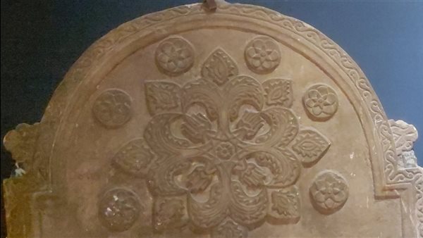 القطعة المختارة هي لوحة من الرخام على شكل عقد نصف مستدير تتوسطه زخارف نباتية منفذة بالحفر البارز على هيئة طاقية محراب، يُرجح أنها كانت عتبًا لمدخل أحد الأبواب، وتعود هذه التحفة الفنية إلى عام 855 هجريًا، بما يعكس دقة الصياغة الجمالية وروعة الزخارف التي ميّزت الفن الإسلامي في تلك الحقبة.
