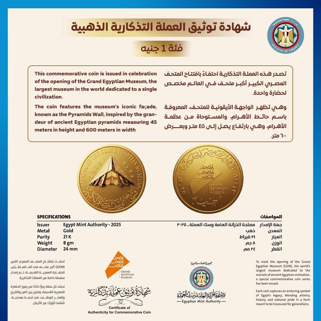العملات التذكارية الذهبية والفضية التي توثق افتتاح المتحف المصري الكبير