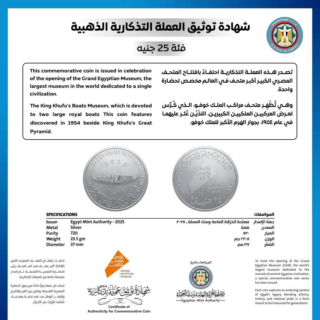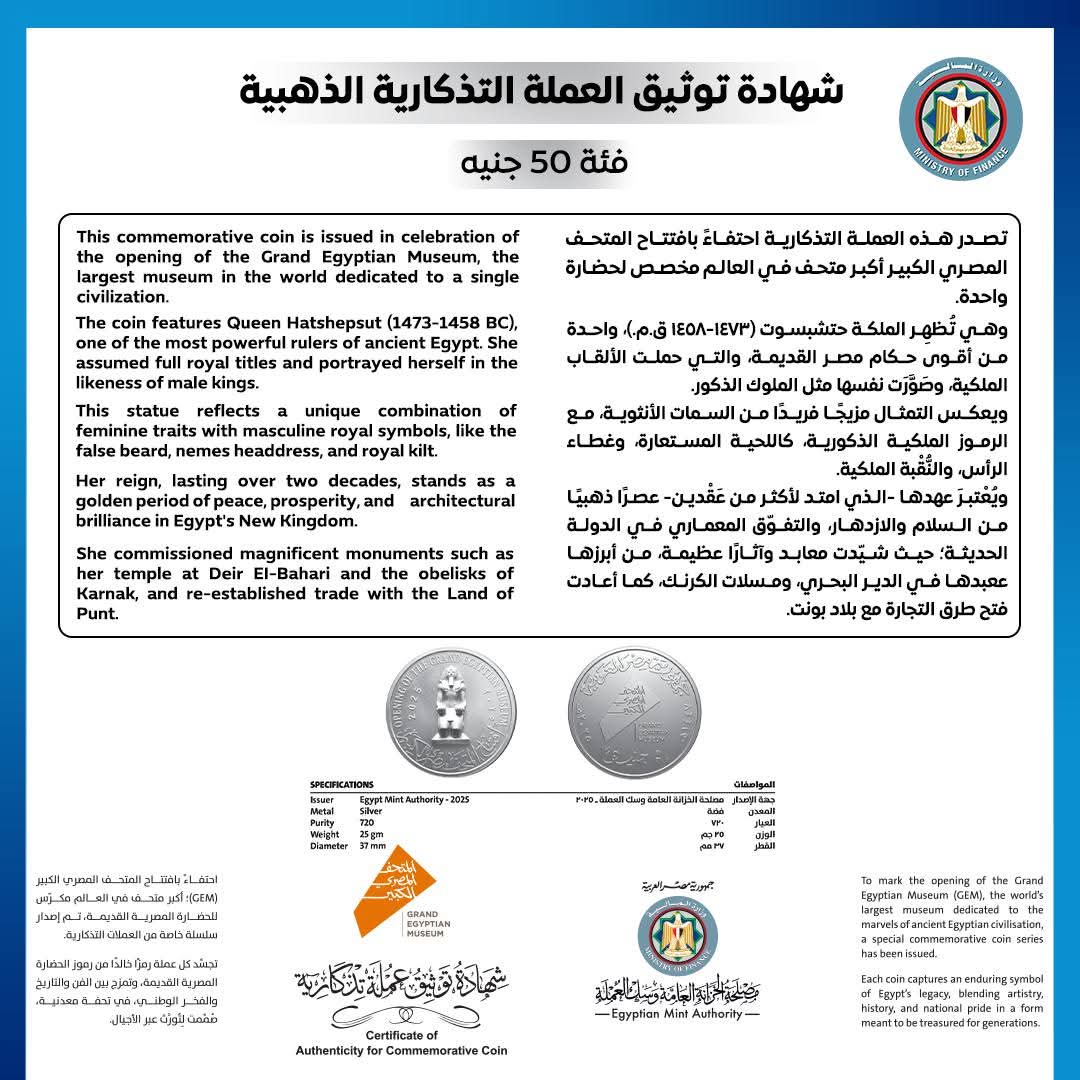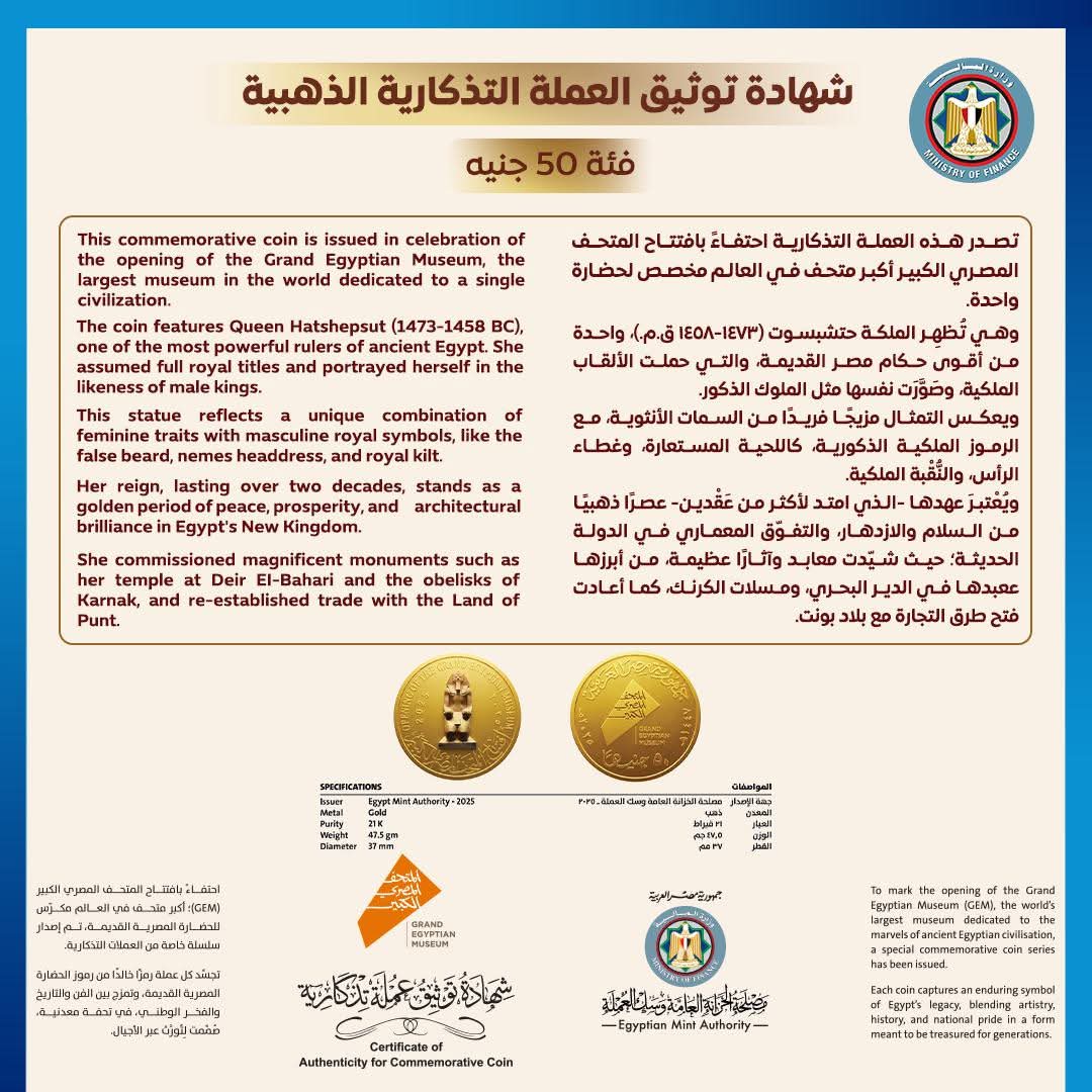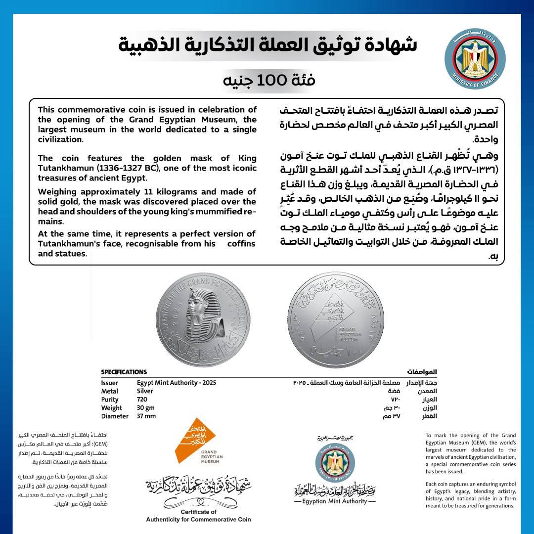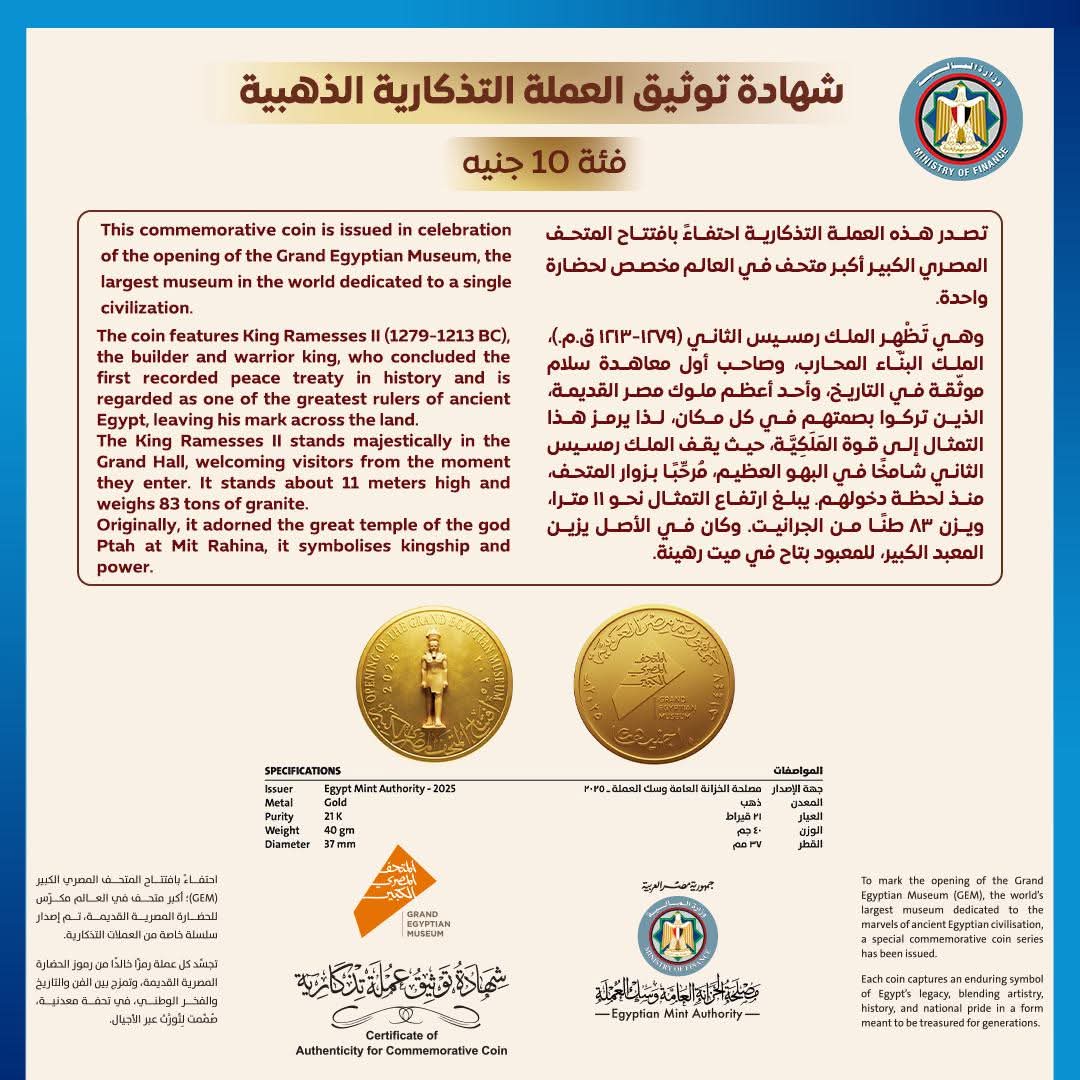 مزيد من العملات التذكارية ذهبية وفضية احتفالًا بالمتحف المصري الكبير